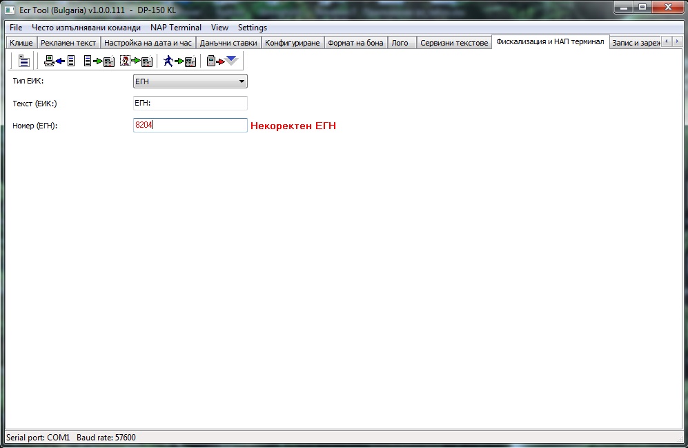 След като фискализираме ФУ-во в НАП терминал конфигуратора при активиране на СИМ картата трябва също да изберем тип ЕИК: да бъде ЕГН: (ако не го е взело от фискализацията)